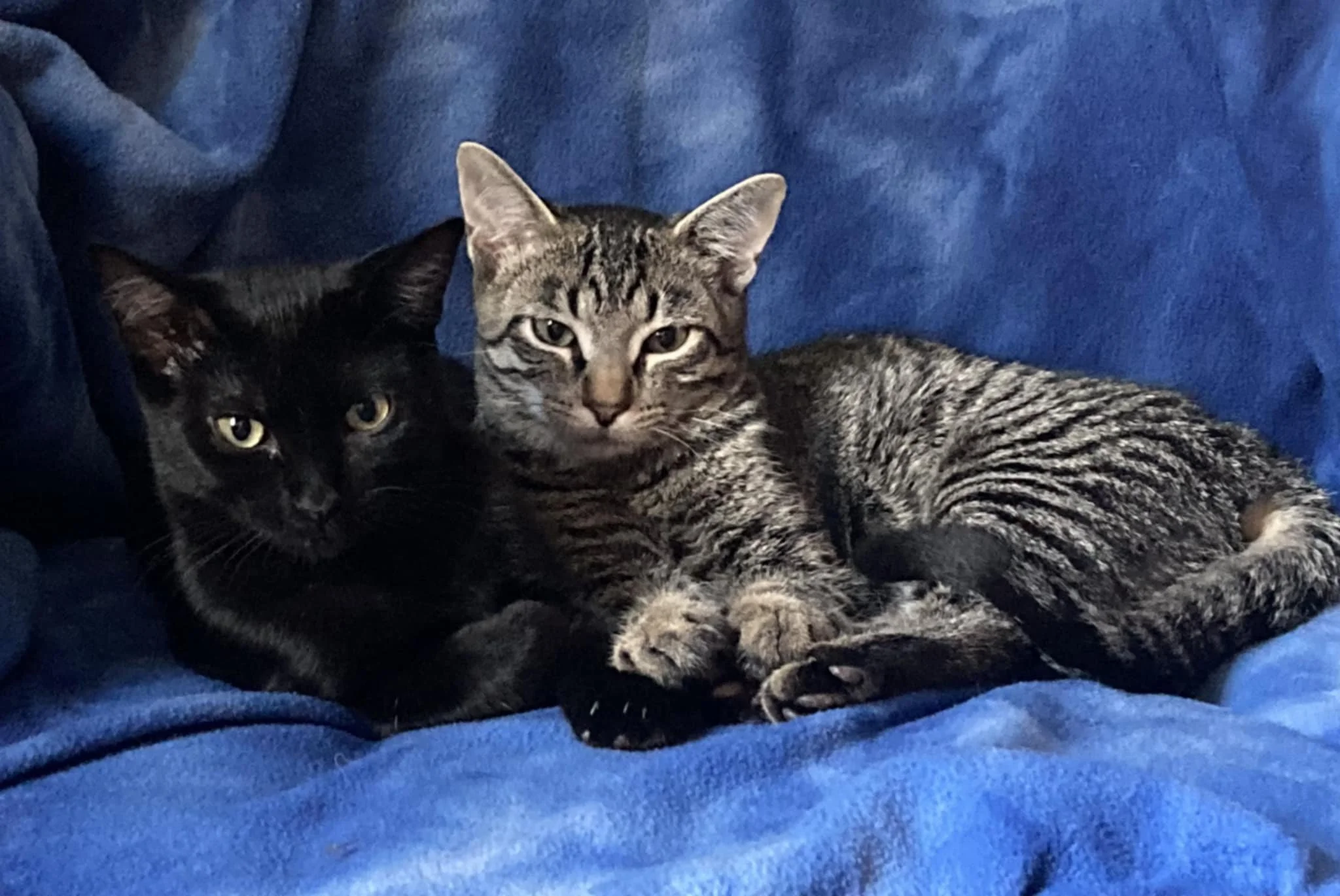 Agnes and Turner are an adorable bonded pair who were rescued after being found as strays on a farm. Since coming into care, they’ve made amazing progress in learning to trust people and enjoy the comforts of a safe home. With patience and their favorite squeeze-up treats, these two will happily warm up and show their sweet, curious sides. They’re not picky about toys but absolutely light up when it’s time to chase their favorite wand toy!