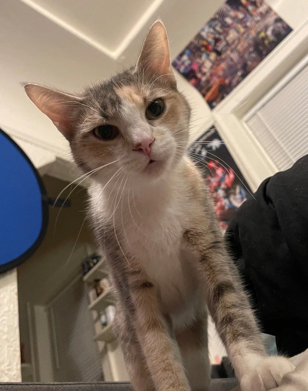 This playful lady can turn almost anything into a toy, but string toys are her absolute favorite—and she’s very proud of how high she can jump while chasing them! While her experience with other cats or dogs is unknown, she may do well with a slow, proper introduction, keeping in mind that she has a more dominant personality. Athena would do best with older, respectful children who can read her cues, as she can become overstimulated at times. With the right home, Athena will make a fun, loving, and engaging companion