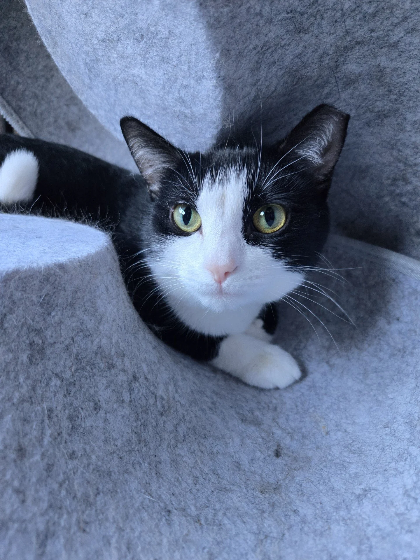 Their bond is truly beautiful to witness, offering comfort and confidence to one another as they navigate new situations together. Because loud noises can be stressful, Binx and Pixel would thrive in a calm, peaceful household with adopters who will let them settle in at their own pace. They do well with other cats and may do okay with a calm dog given a slow, proper introduction. Older, respectful children who understand their shy nature would be the best fit for this special duo.